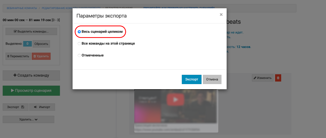 3) Экспорт сценария для дублирования вебинаров.
